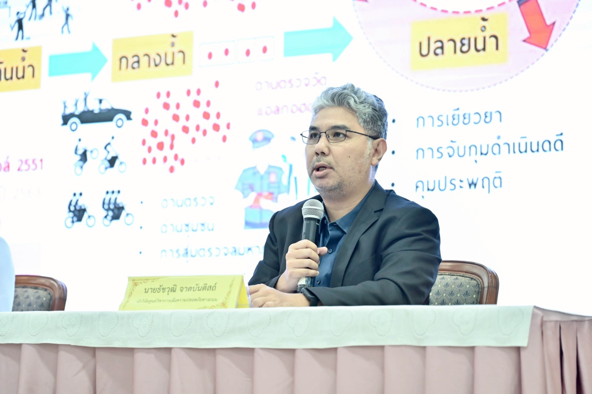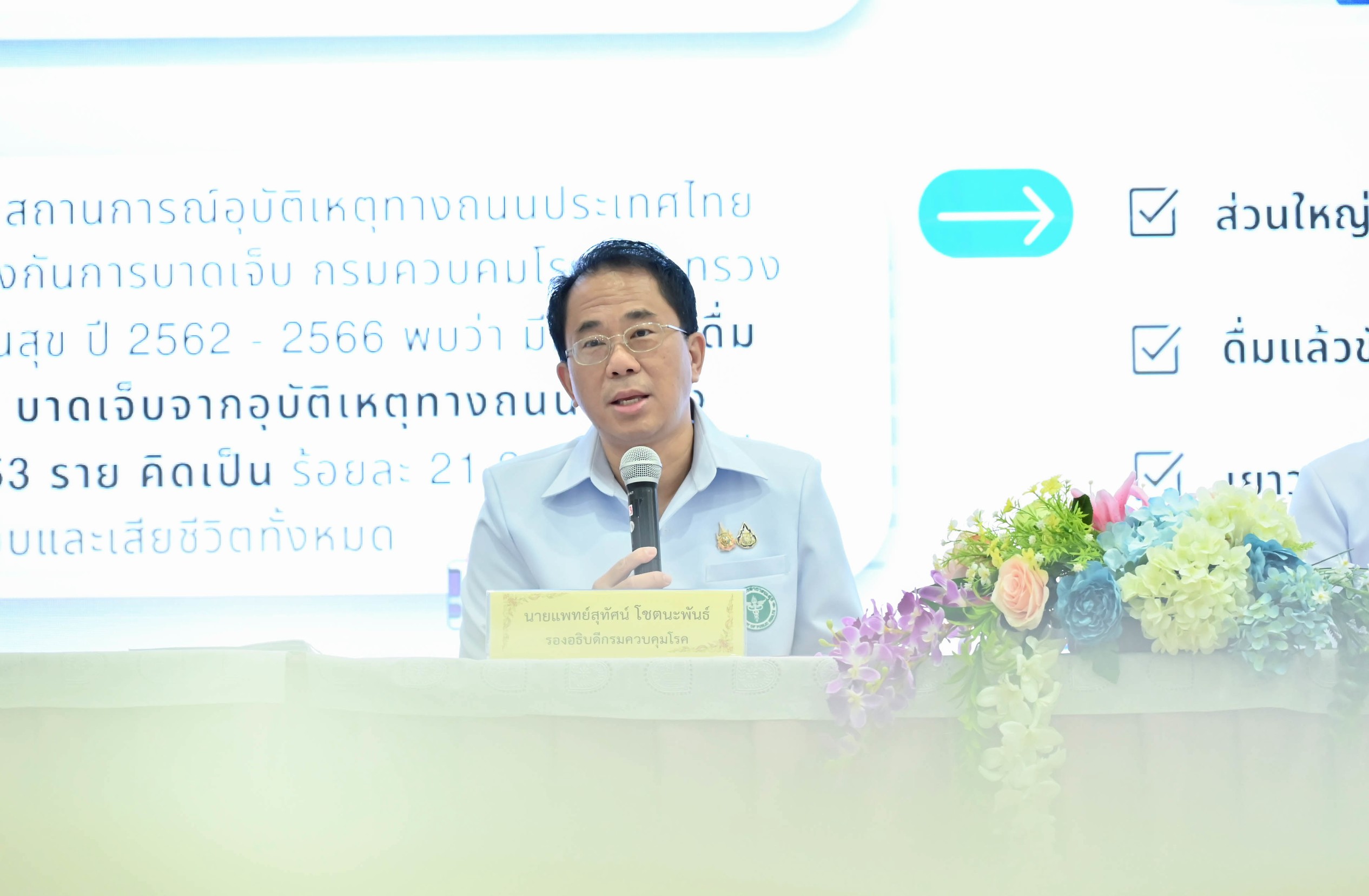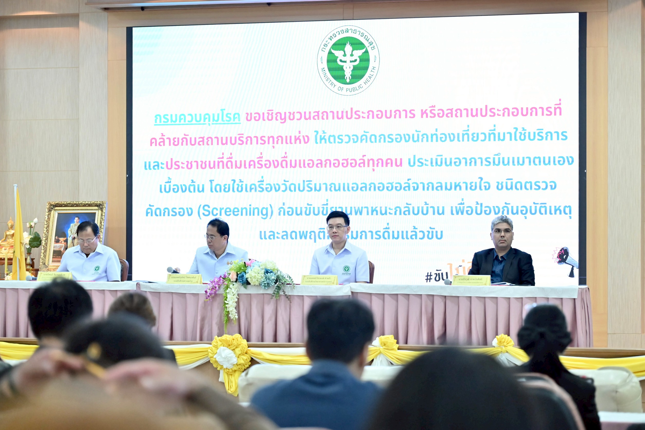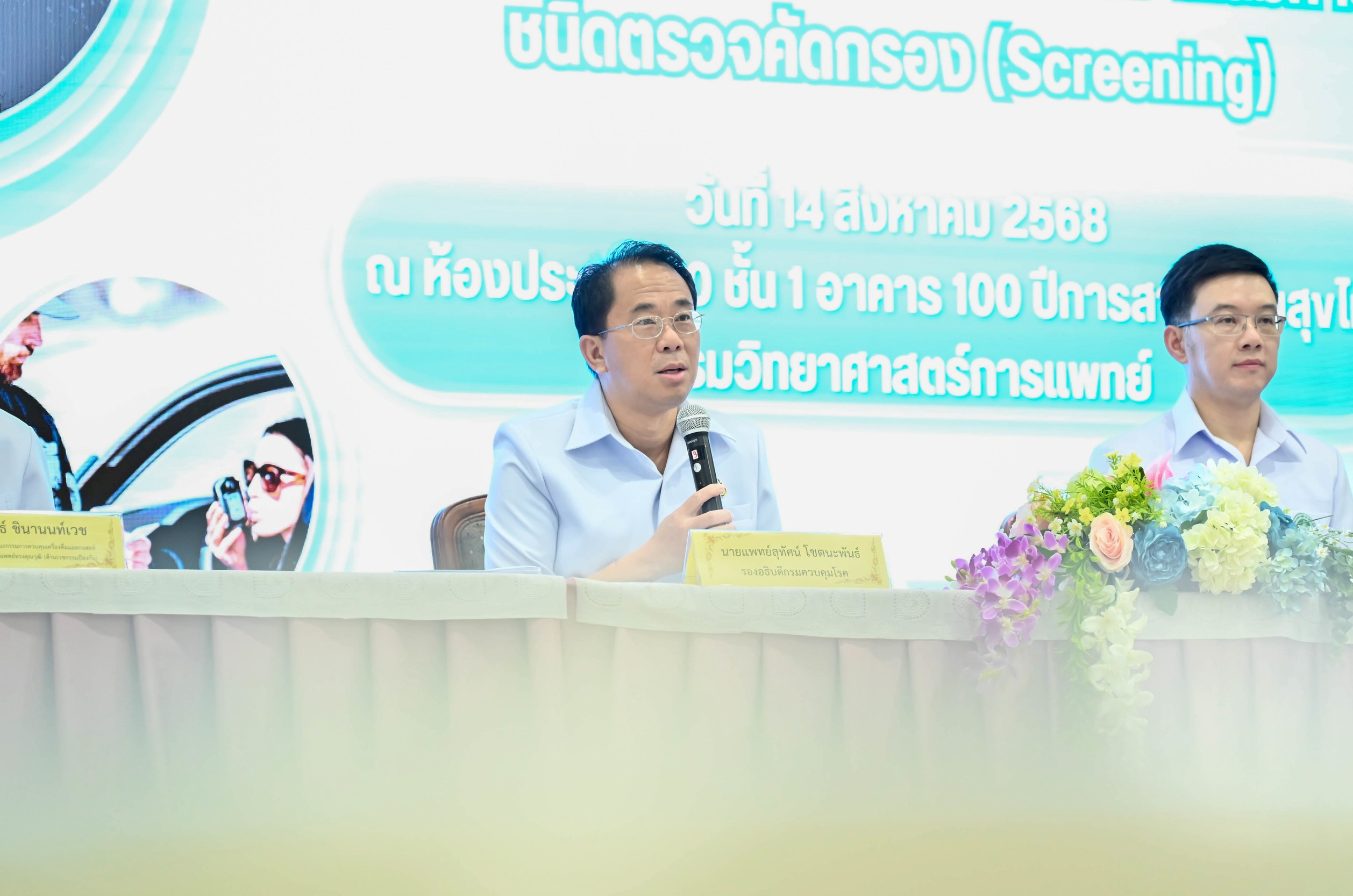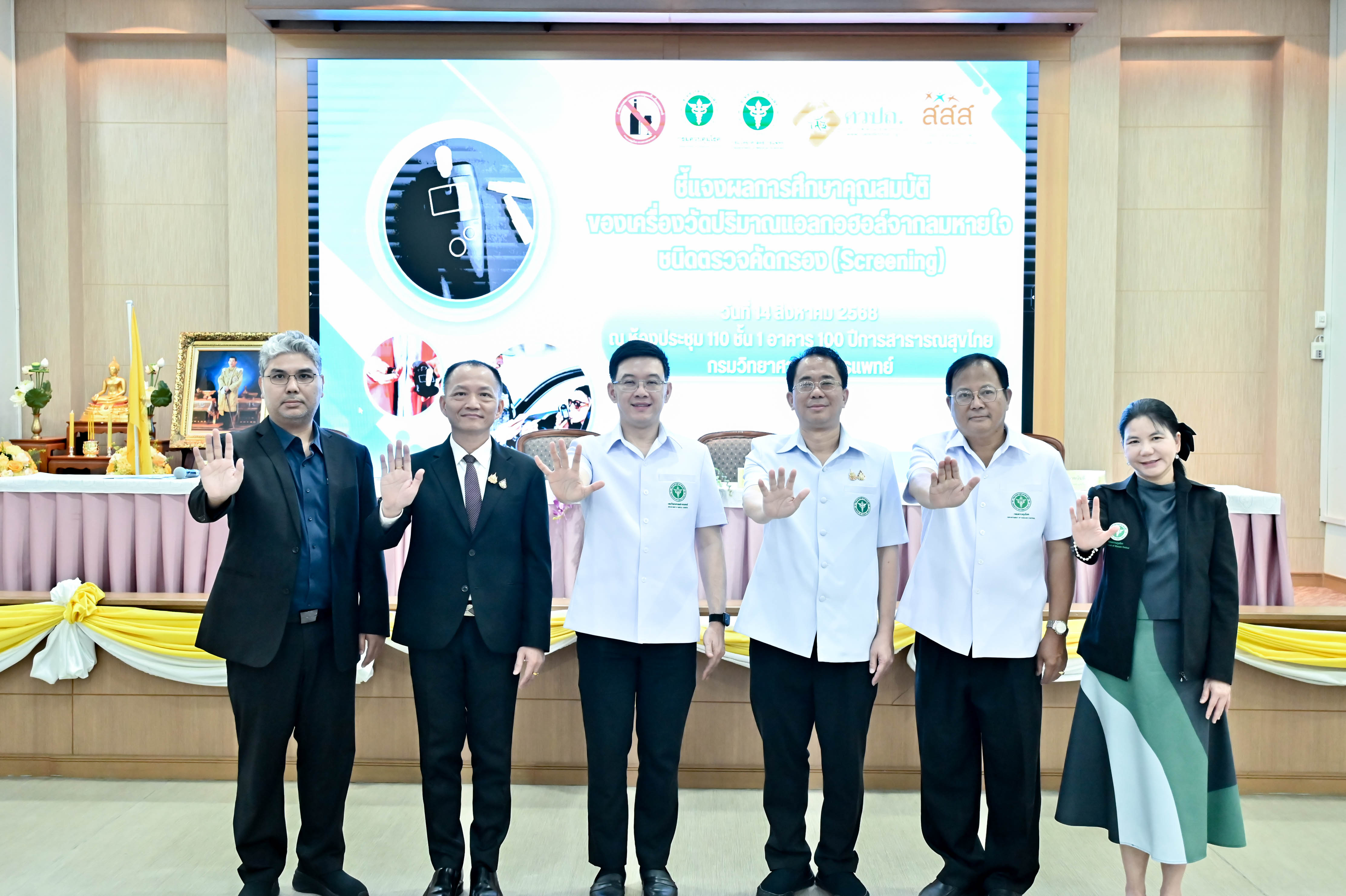 วันนี้ (14 สิงหาคม 2568) นายแพทย์สุทัศน์ โชตนะพันธ์ รองอธิบดีกรมควบคุมโรค พร้อมด้วย นายแพทย์วัชรพงษ์ คําหล้า รองอธิบดีกรมวิทยาศาสตร์การแพทย์ นายแพทย์นิพนธ์ ชินานนท์เวช ผู้อำนวยการสำนักงานคณะกรรมการควบคุมเครื่องดื่มแอลกอฮอล์ รักษาการในตำแหน่งนายแพทย์ทรงคุณวุฒิ (ด้านเวชกรรมป้องกัน) กรมควบคุมโรค นายธรรมรัตน์ บุญสูง ผู้อำนวยการสำนักรังสีและเครื่องมือแพทย์ กรมวิทยาศาสตร์การแพทย์ และนายธัชวุฒิ จาดบันดิสถ์ นักวิจัย ศูนย์วิชาการเพื่อความปลอดภัยทางถนน (ศวปถ.) แถลงข่าว “การขับเคลื่อนความร่วมมือด้านมาตรฐานเครื่องวัดปริมาณแอลกอฮอล์จากลมหายใจชนิดตรวจคัดกรอง (Screening) เพื่อความปลอดภัยของประชาชน” ณ ห้องประชุม 110 อาคาร 100 ปีการสาธารณสุขไทย กรมวิทยาศาสตร์การแพทย์ จังหวัดนนทบุรี