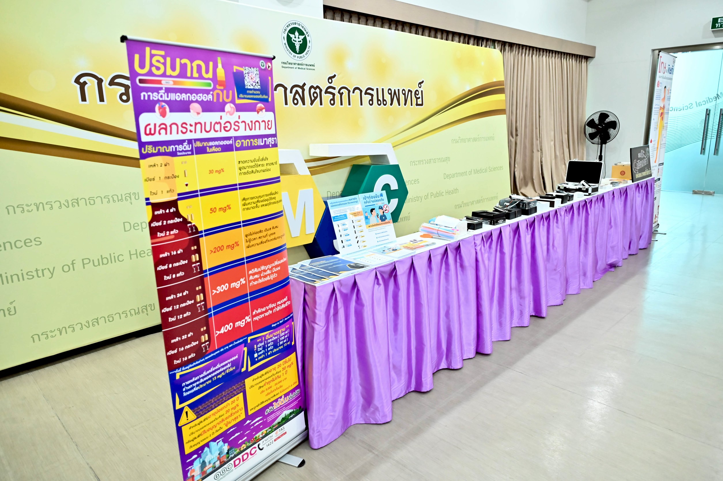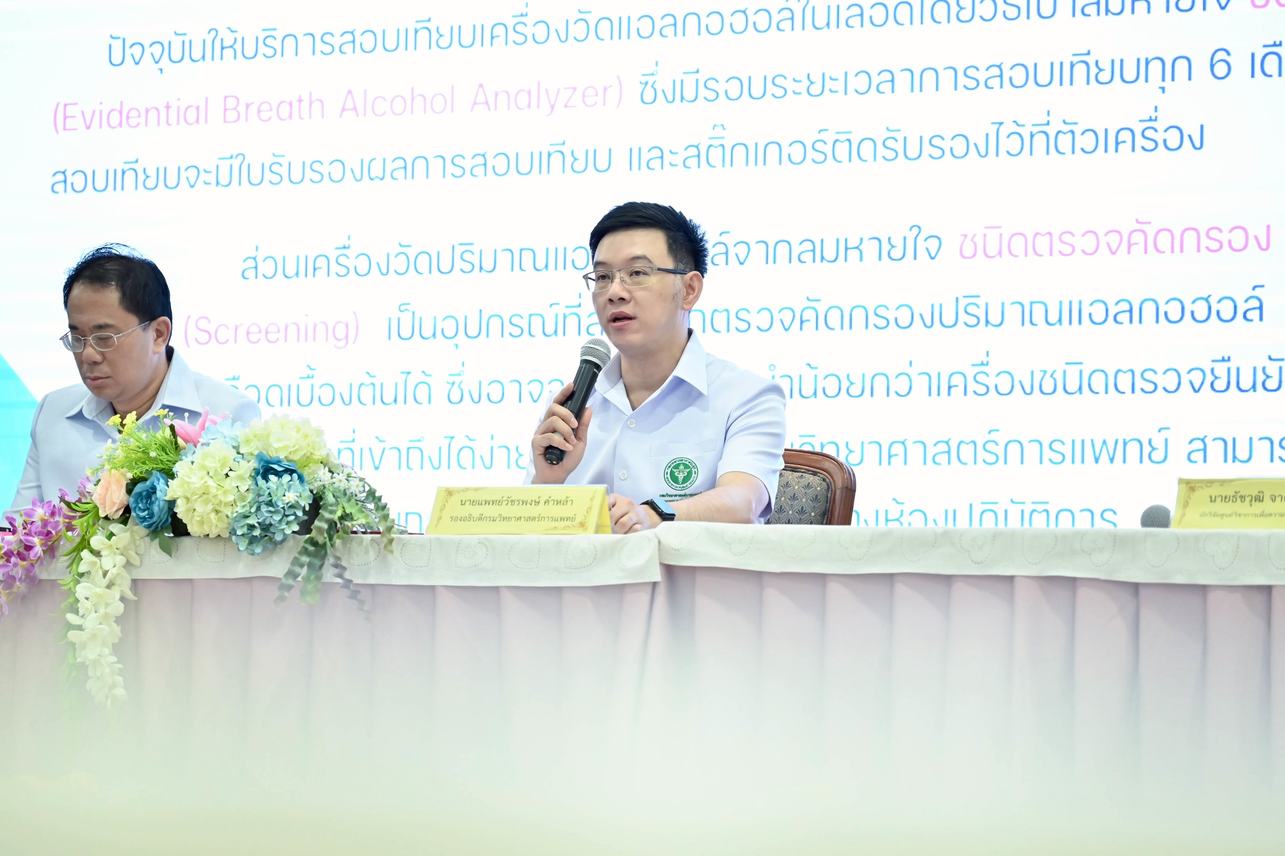 ด้าน นายแพทย์วัชรพงษ์ คําหล้า รองอธิบดีกรมวิทยาศาสตร์การแพทย์ กล่าวเพิ่มเติมว่า กรมวิทยาศาสตร์การแพทย์ เป็นหน่วยงานที่มีห้องปฏิบัติการอ้างอิงทางการแพทย์และสาธารณสุข มีการให้บริการตรวจวิเคราะห์ปริมาณแอลกอฮอล์ในเลือดที่ส่งจากโรงพยาบาล และให้บริการสอบเทียบเครื่องวัดแอลกอฮอล์ในเลือด โดยวิธีเป่าลมหายใจทั้งชนิดตรวจยืนยันผล (Evidential Breath Alcohol Analyzer) และชนิดตรวจคัดกรองเบื้องต้น (Screening) โดยสามารถส่งตรวจได้ที่สำนักรังสีและเครื่องมือแพทย์ และศูนย์วิทยาศาสตร์การแพทย์ในจังหวัดเชียงใหม่ ขอนแก่น นครราชสีมา อุบลราชธานี สงขลาชลบุรี และสระบุรี