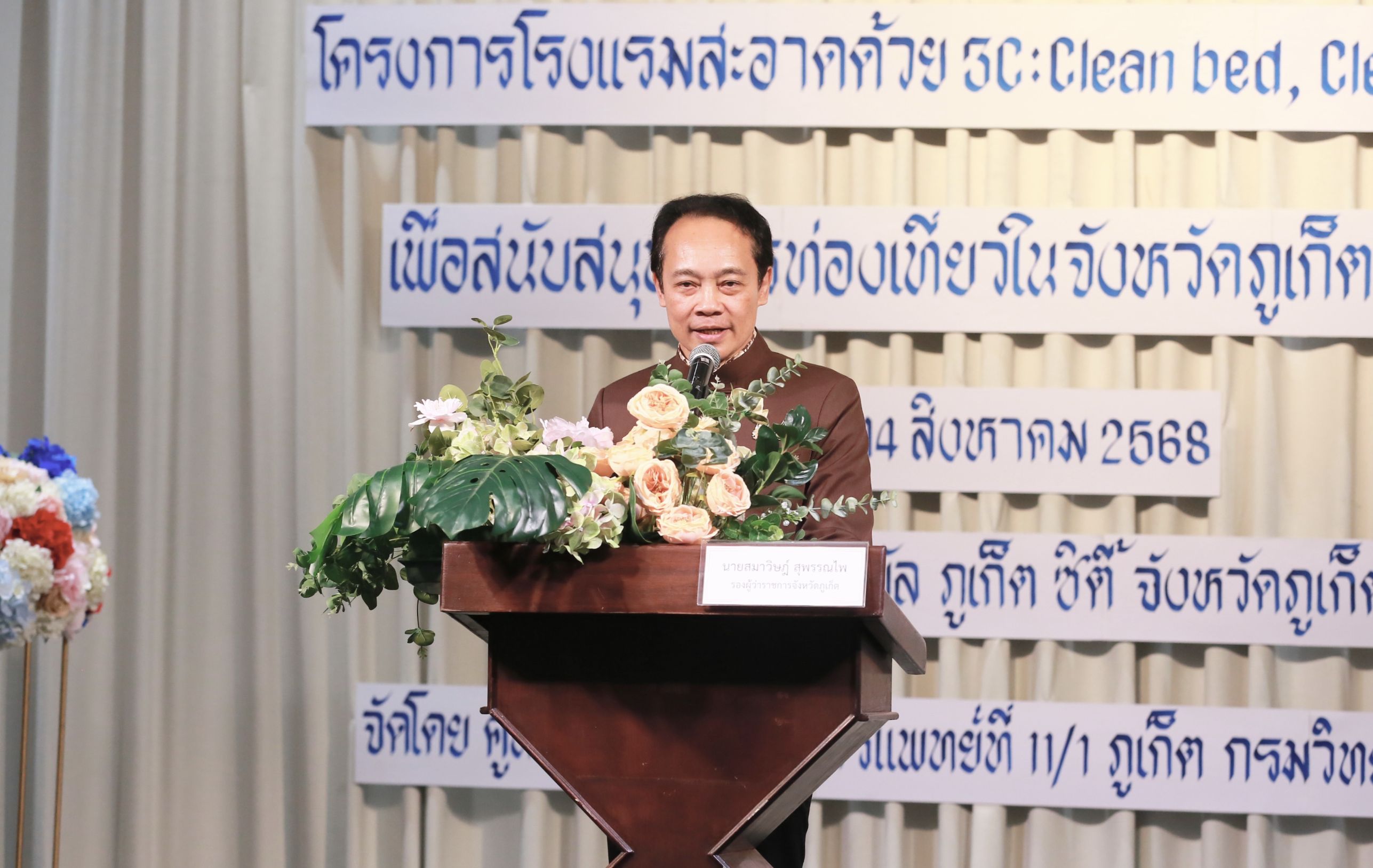 ด้านนายสมาวิษฎ์ สุพรรณไพ รองผู้ว่าราชการจังหวัดภูเก็ต กล่าวว่า จังหวัดภูเก็ตเป็นไข่มุกอันดามัน ดินแดนแห่งความสุขมีธรรมชาติสวยงามหาดทรายขาวน้ำทะเลใส และวัฒนธรรมที่โดดเด่น แหล่งท่องเที่ยวที่หลากหลาย ได้ดึงดูดนักท่องเที่ยวทั้งชาวไทยและชาวต่างชาติให้มาเยือนเป็นจำนวนมากโดยในปี พ.ศ.2567 ช่วงเดือนมกราคม – มิถุนายน มีจำนวนนักท่องเที่ยวประมาณ 6,759,550 คน เป็นชาวไทย 1,828,657 คน ชาวต่างชาติ 4,930,893 คน มีรายได้หมุนเวียนทั้งหมด 258,189.95 ล้านบาท มีอัตราการเข้าพักในโรงแรม 79.50% ซึ่งโครงการโรงแรมสะอาดด้วย 3C : Clean bed, Clean air, Clean food ที่กรมวิทยาศาสตร์การแพทย์ ได้จัดทำขึ้น เพื่อเพิ่มคุณภาพของโรงแรมที่นักท่องเที่ยวเข้าพัก จะเพิ่มความมั่นใจให้นักท่องเที่ยวมากยิ่งขึ้น ซึ่งการประชุมวันนี้เป็นโอกาสที่ได้ร่วมกันหาแนวทางการพัฒนาการท่องเที่ยวของจังหวัดชายฝั่งทะเลอันดามัน จังหวัดภูเก็ต กระบี่ และพังงา เพื่อสนับสนุนนโยบายท่องเที่ยวปลอดภัย เพิ่มศักยภาพเศรษฐกิจสุขภาพ เป็นเมืองท่องเที่ยวที่ยั่งยืน มั่นคงและเป็นที่ประทับใจของนักท่องเที่ยวตลอดไป