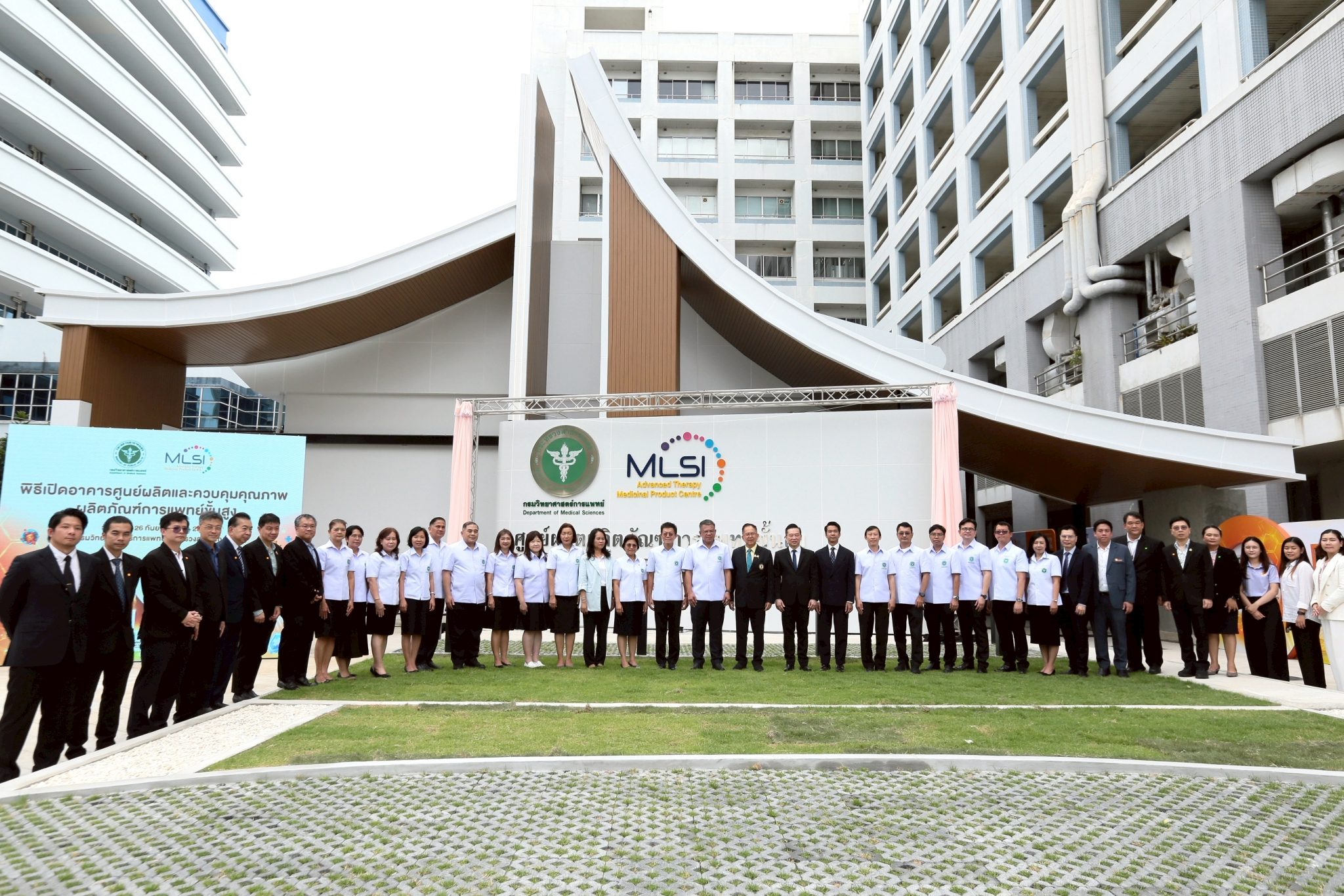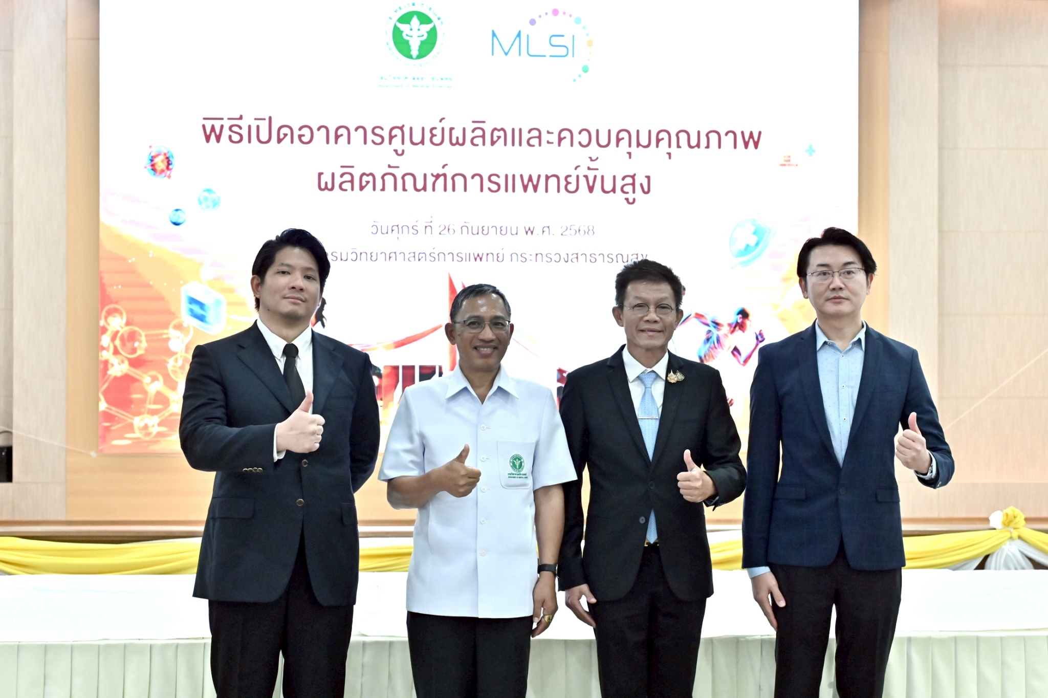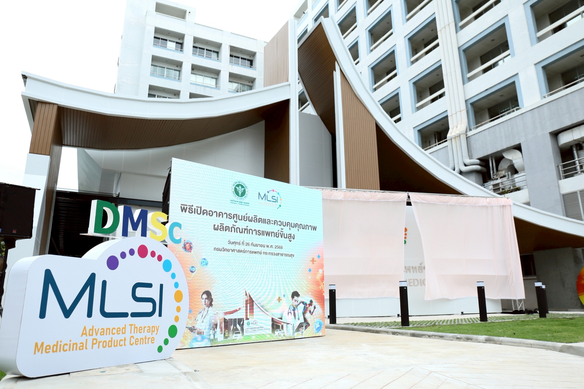 วันที่ 26 กันยายน 2568 – กรมวิทยาศาสตร์การแพทย์ กระทรวงสาธารณสุข จัดพิธีเปิด “อาคารศูนย์ผลิตและควบคุมคุณภาพผลิตภัณฑ์การแพทย์ขั้นสูง” ณ กรมวิทยาศาสตร์การแพทย์ กระทรวงสาธารณสุข จังหวัดนนทบุรี โดยมี นายแพทย์ยงยศ ธรรมวุฒิ อธิบดีกรมวิทยาศาสตร์การแพทย์ เป็นประธานในพิธี พร้อมด้วยผู้บริหารกรมวิทยาศาสตร์การแพทย์ ผู้แทนหน่วยงานภาครัฐ ภาคเอกชน และนักวิจัยด้านการแพทย์ขั้นสูง ร่วมงาน ภายในงานมีการนำเสนอวิดีทัศน์เกี่ยวกับศูนย์ผลิตและควบคุมคุณภาพฯ การเสวนาพิเศษในหัวข้อ “อนาคตของผลิตภัณฑ์การแพทย์ขั้นสูงในประเทศไทย: โอกาสและความท้าทาย” รวมถึงนิทรรศการแสดงศักยภาพงานวิจัยและพัฒนาที่เกี่ยวข้อง