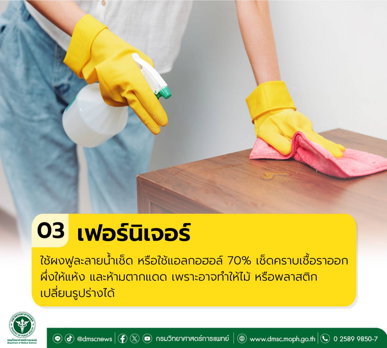 📣 กรมวิทยาศาสตร์การแพทย์ แนะนำวิธีกำจัดเชื้อรา ดังนี้