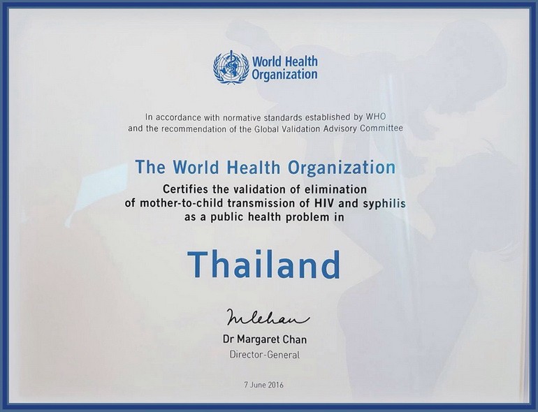 อธิบดีกรมวิทยาศาสตร์การแพทย์ กล่าวต่ออีกว่า ประเทศไทยยังคงธำรงรักษาความสำเร็จในการลดอัตราการถ่ายทอดเชื้อจากแม่สู่ลูกอย่างต่อเนื่อง โดยมีอัตราการถ่ายทอดเชื้ออยู่ที่ ร้อยละ 1.46 ซึ่งประเทศไทยได้รับการรับรองจาก WHO เมื่อปี พ.ศ. 2559 ที่สามารถยุติการถ่ายทอดเชื้อเอชไอวีจากแม่สู่ลูกได้สำเร็จ เนื่องจากมีอัตราการถ่ายทอดเชื้อจากแม่สู่ลูกต่ำกว่าร้อยละ 2 นับเป็นประเทศแรกในเอเชียและเป็นประเทศที่สองของโลก