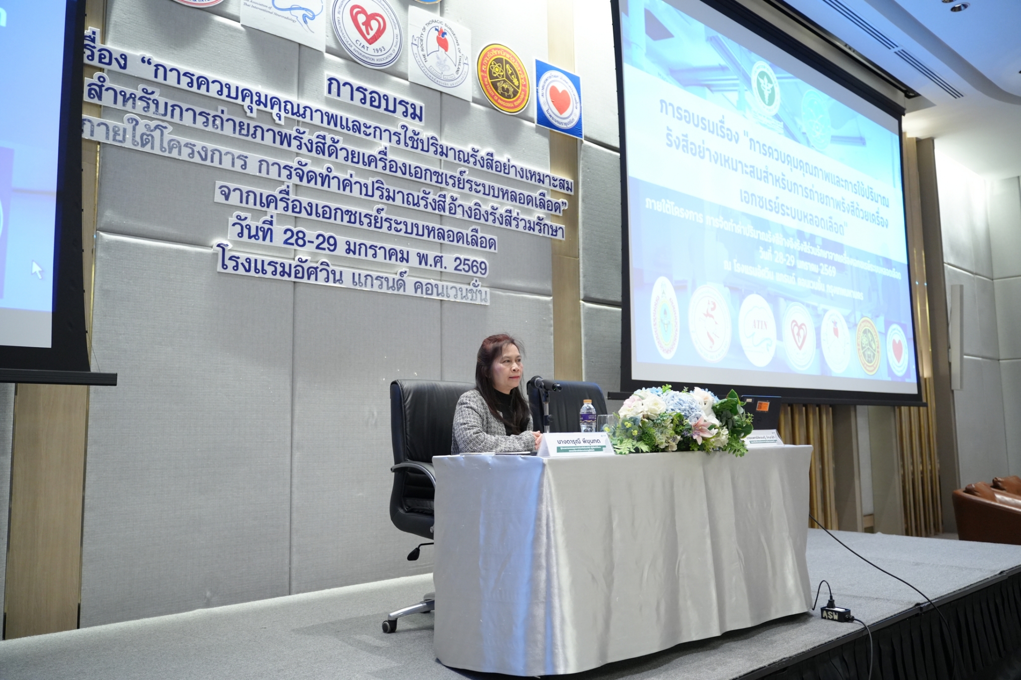 กรมวิทยาศาสตร์การแพทย์ กระทรวงสาธารณสุข ร่วมกับ สำนักงานปรมาณูเพื่อสันติ จัดอบรม “การควบคุมคุณภาพและการใช้ปริมาณรังสีอย่างเหมาะสมสำหรับการถ่ายภาพรังสีด้วยเครื่องเอกซเรย์ระบบหลอดเลือด” ภายใต้โครงการการจัดทำค่าปริมาณรังสีอ้างอิงรังสีร่วมรักษาจากเครื่องเอกซเรย์ระบบหลอดเลือด โดยมี นพ.พิเชฐ บัญญัติ รองอธิบดีกรมวิทยาศาสตร์การแพทย์ เป็นประธานในพิธีเปิดการอบรม นางดารุณี พีขุนทดผู้อำนวยการกองอนุญาตทางนิวเคลียร์และรังสี สำนักงานปรมาณูเพื่อสันติ กล่าวต้อนรับผู้ร่วมอบรม ณ โรงแรมอัศวิน แกรนด์ คอนเวนชั่น กรุงเทพมหานคร วันที่ 29 มกราคม 2569