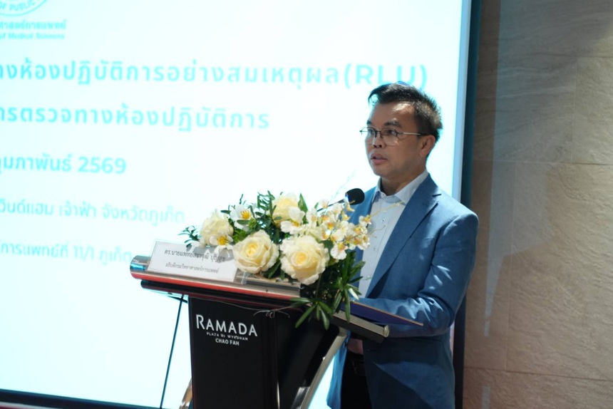 วันที่ 16 กุมภาพันธ์ 2569 - ดร.นพ.สราวุฒิ บุญสุข อธิบดีกรมวิทยาศาสตร์การแพทย์ เป็นประธานเปิด การสัมมนาแลกเปลี่ยนเรียนรู้การตรวจทางห้องปฏิบัติการอย่างสมเหตุผล (RLU) และการลดค่าใช้จ่ายในการตรวจทางห้องปฏิบัติการ มุ่งเน้นการสั่งตรวจที่ “จำเป็น เหมาะสม และคุ้มค่า” เพื่อเพิ่มความปลอดภัยของผู้ป่วย ยกระดับคุณภาพระบบบริการสุขภาพของประเทศ โดยมี นพ.พิเชฐ บัญญัติ รองอธิบดีกรมวิทยาศาสตร์การแพทย์ นพ.วัชรพงษ์ คำหล้า รองอธิบดีกรมวิทยาศาสตร์การแพทย์ พร้อมผู้บริหาร ผู้เชี่ยวชาญ และบุคลากร จากหน่วยงานที่เกี่ยวข้องเข้าร่วมสัมมนา ณ โรงแรมรามาดา พลาซ่า บาย วินด์แฮม เจ้าฟ้า จังหวัดภูเก็ต