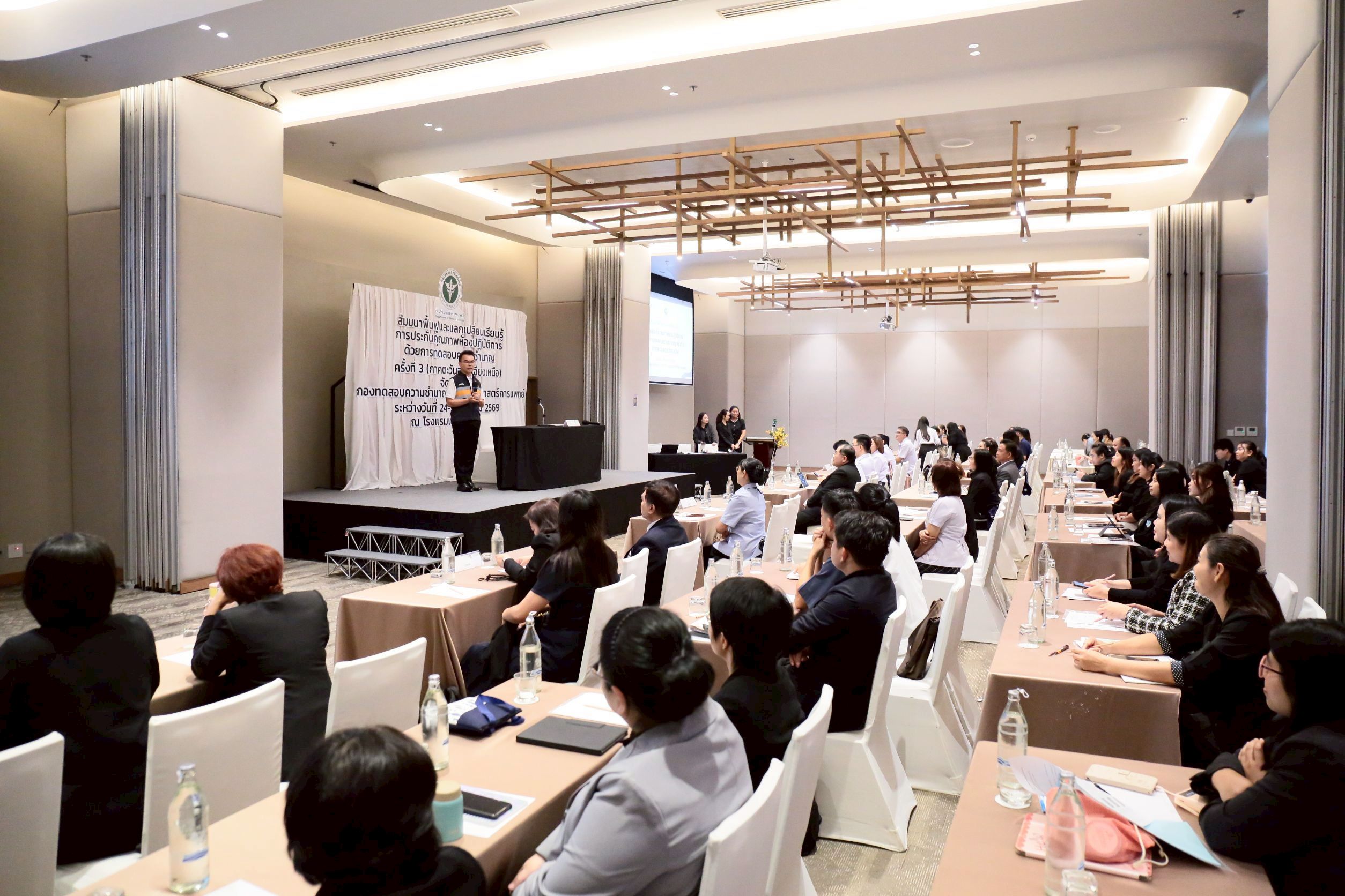 วันที่ 24-25 มีนาคม พ.ศ.2569 - ดร.นพ.สราวุฒิ บุญสุข อธิบดีกรมวิทยาศาสตร์การแพทย์ เป็นประธานเปิดการสัมมนา ฟื้นฟูและแลกเปลี่ยนเรียนรู้การประกันคุณภาพห้องปฏิบัติการด้วยการทดสอบความชำนาญ ครั้งที่ 3 ในพื้นที่ภาคตะวันออกเฉียงเหนือ  กล่าวรายงานโดย นพ.วัชรพงษ์ คำหล้า รองอธิบดีกรมวิทยาศาสตร์การแพทย์ โดยมี พร้อมด้วย ดร.ฐิติวัสส์ สุวคนธ์ ผู้อำนวยการกองทดสอบความชำนาญ  ผู้บริหารศูนย์วิทยาศาสตร์การแพทย์ วิทยากรผู้เชี่ยวชาญจากมหาวิทยาลัยมหิดล กรมควบคุมโรค กรมวิทยาศาสตร์การแพทย์ และผู้เข้าร่วมสัมมนาจากห้องปฏิบัติการโรงพยาบาลภาครัฐ และภาคเอกชนที่เป็นสมาชิกการทดสอบความชำนาญของกองทดสอบความชำนาญเข้าร่วมสัมมนา ณ โรงแรมเซ็นทารา จังหวัดอุบลราชธานี