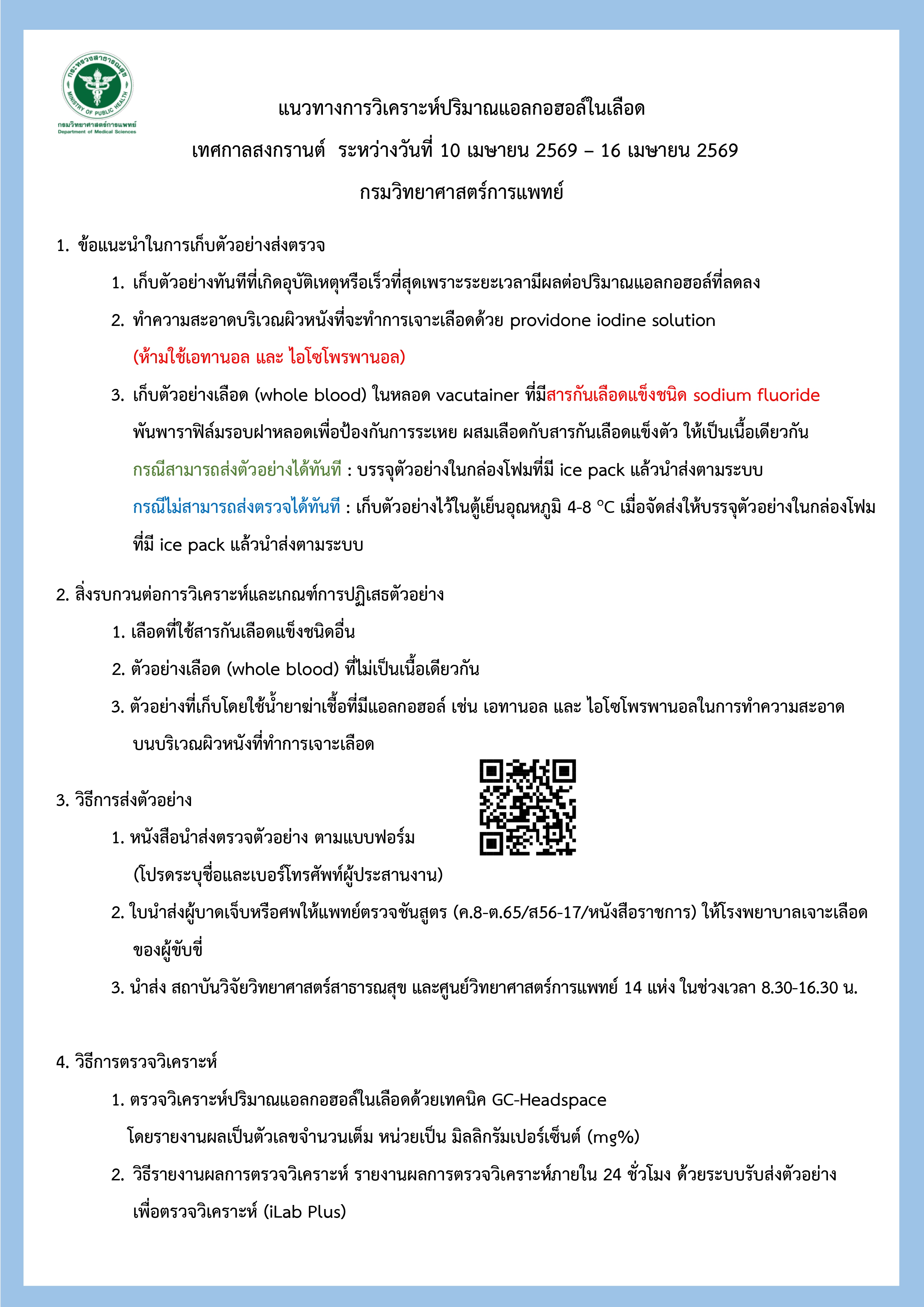 แนวทางการวิเคราะห์ปริมาณแอลกอฮอล์ในเลือด ช่วงสงกรานต์