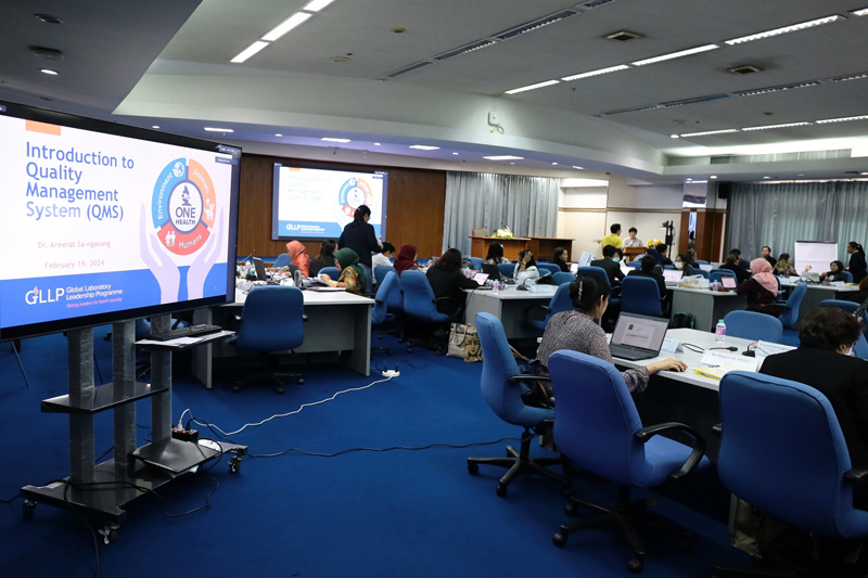 นายแพทย์อาชวินทร์ โรจนวิวัฒน์ ผู้อำนวยการสถาบันวิจัยวิทยาศาสตร์สาธารณสุข กรมวิทยาศาสตร์การแพทย์ กล่าวว่า สถาบันวิจัยวิทยาศาสตร์สาธารณสุข กรมวิทยาศาสตร์การแพทย์ ร่วมกับ กรมปศุสัตว์ จัดโครงการพัฒนาผู้นำห้องปฏิบัติการระดับเอเชียตะวันออกเฉียงใต้ (รุ่นที่ 1 ครั้งที่ 3) (Southeast Asia Regional One Health Global Laboratory Leadership Program; Southeast Asia GLLP) ในหัวข้อ Competency 5: Quality management system (QMS) ร่วมกับหน่วยงานที่มีภารกิจด้านห้องปฏิบัติการสุขภาพคนและสุขภาพสัตว์ทั้งในประเทศ และระดับภูมิภาค ได้แก่ ประเทศมาเลเซีย กัมพูชา และอินโดนีเซีย เพื่อสร้างผู้นำทางห้องปฏิบัติการให้มีความรู้ความเชี่ยวชาญ สามารถผลักดันห้องปฏิบัติการด้านการแพทย์และสาธารณสุขของประเทศไทยและระดับภูมิภาคให้เป็นที่เชื่อมั่นในระดับชาติและนานาชาติ เพื่อตอบโต้ภัยคุกคามด้านสุขภาพได้อย่างมีประสิทธิภาพและยั่งยืนภายใต้แนวคิดสุขภาพหนึ่งเดียว