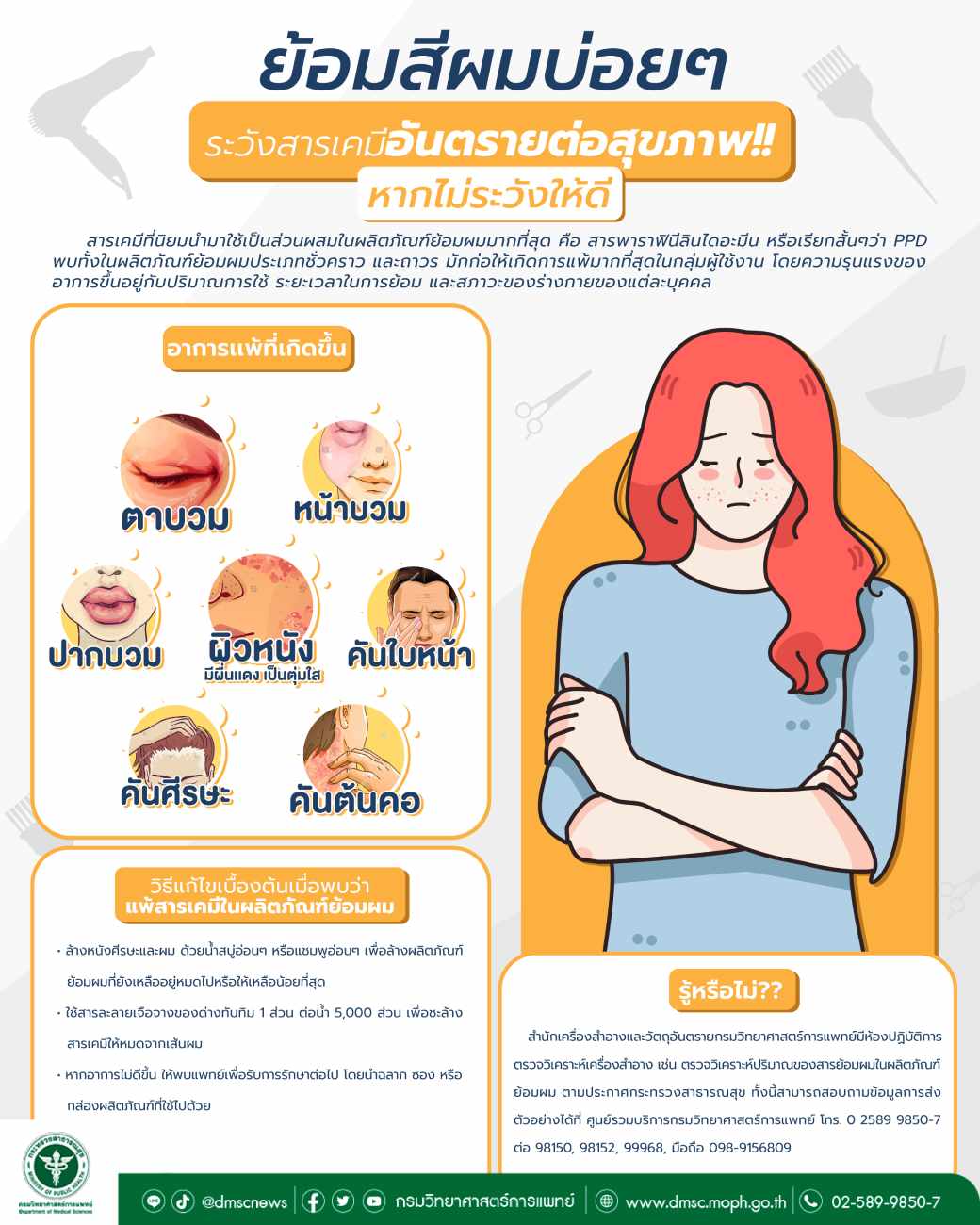 📍วิธีแก้ไขเบื้องต้นเมื่อพบว่าแพ้สารเคมีในผลิตภัณฑ์ย้อมผม